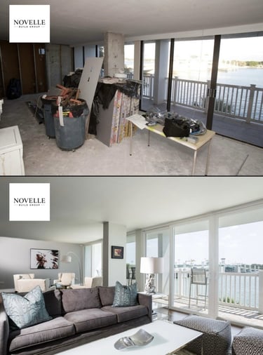 Addressed balcony-interface spalling with epoxy injection, leveled slab to 1/8-in. tolerance, and installed STC-55 acoustic flooring. Finished with lime-wash walls, oversized pocket sliders, and custom LED coves to maximize the ocean view. Project closed two weeks ahead of schedule and passed final inspection on first call.